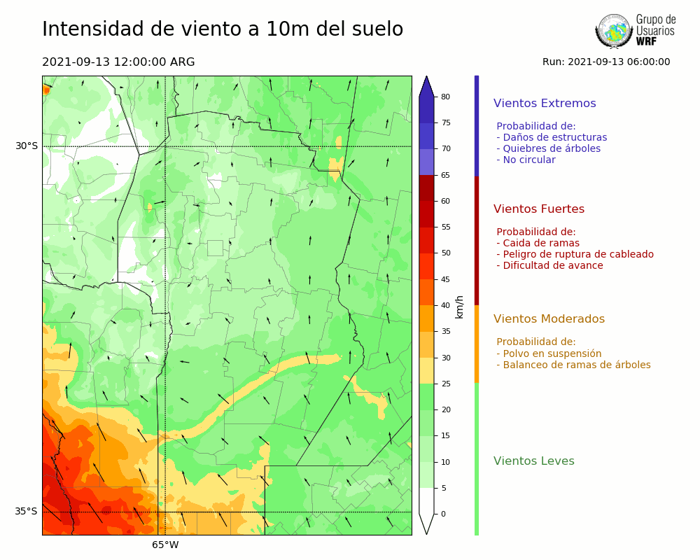 • Intensidad máxima: 10.94 km/h (13/09/2021 12hs.)