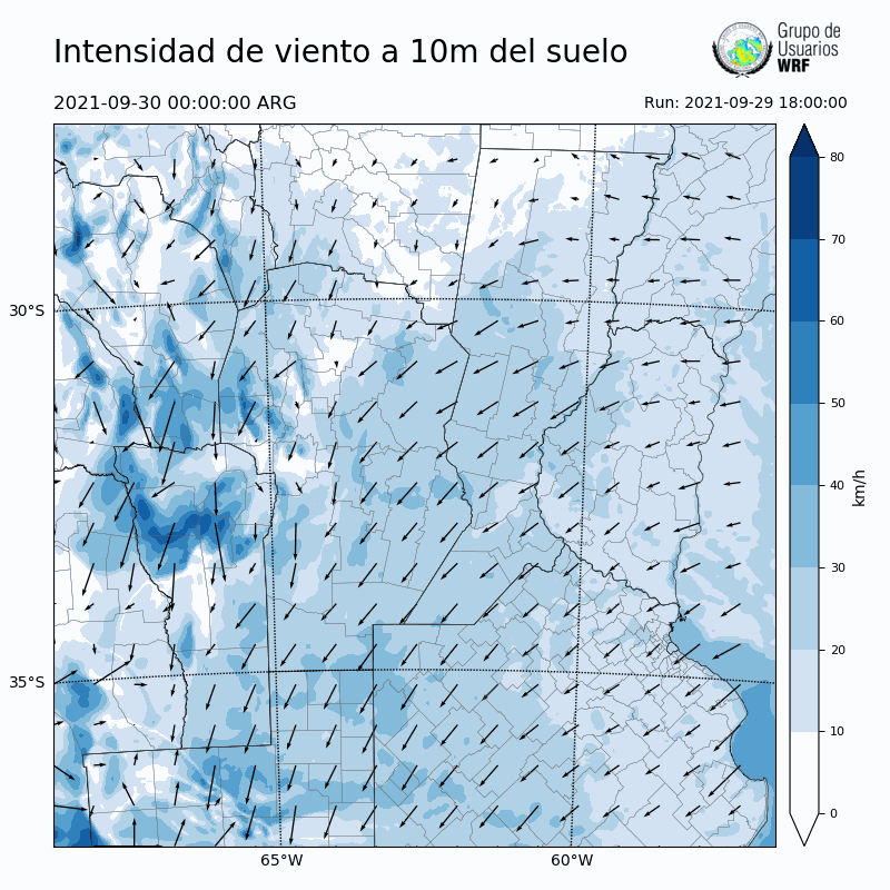 • Intensidad máxima: 51.52 km/h (30/09/2021 11hs.)