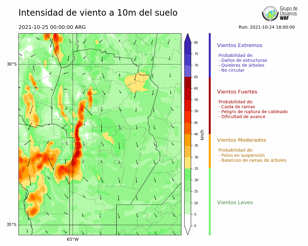 • Intensidad máxima: 6.99 km/h (25/10/2021 17hs.)
