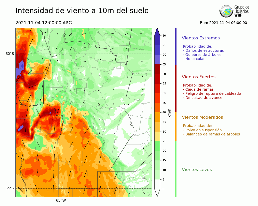 • Intensidad máxima: 6.52 km/h (04/11/2021 14hs.)