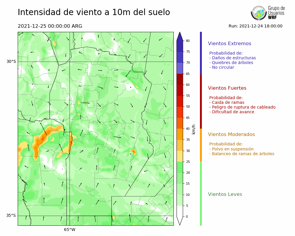 • Intensidad máxima: 24.51 km/h (25/12/2021 01hs.)