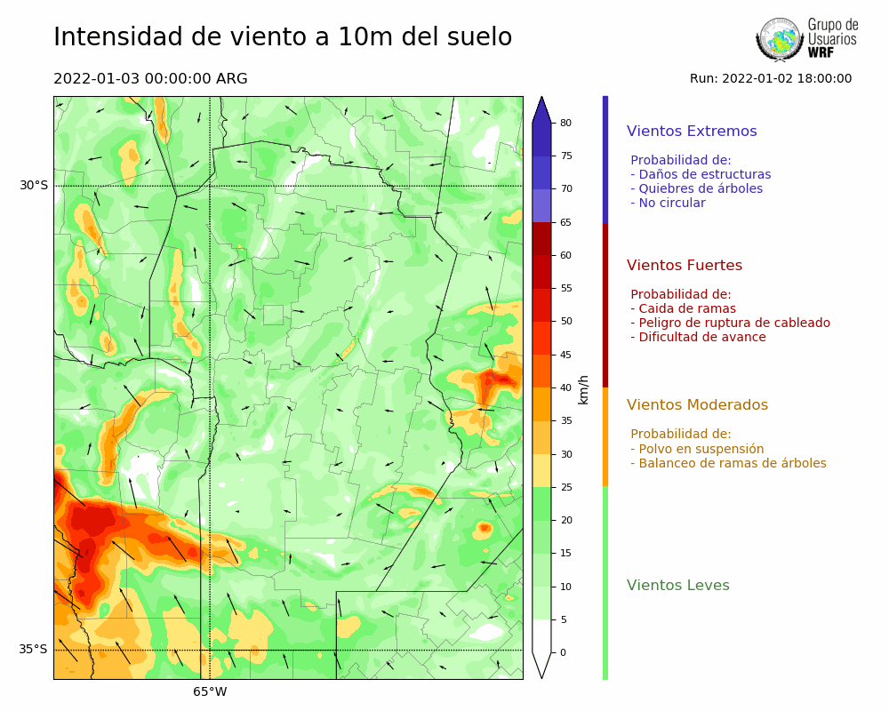• Intensidad máxima: 3.50 km/h (03/01/2022 05hs.)