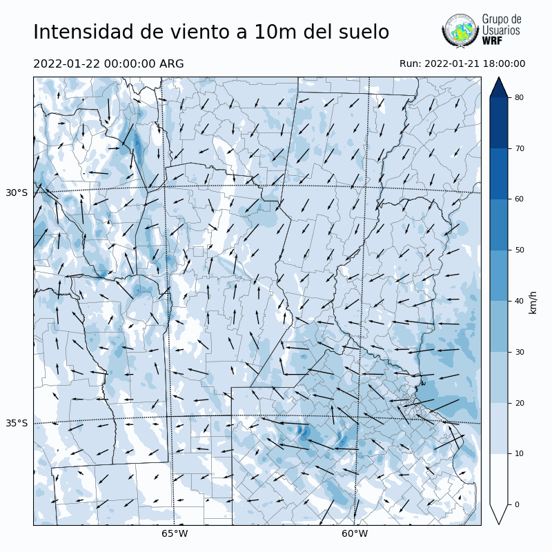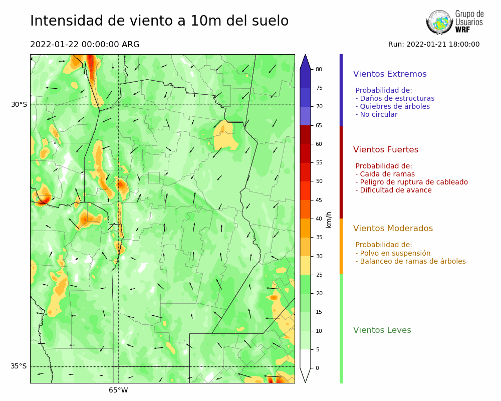 • Intensidad máxima: 28.56 km/h (22/01/2022 11hs.)