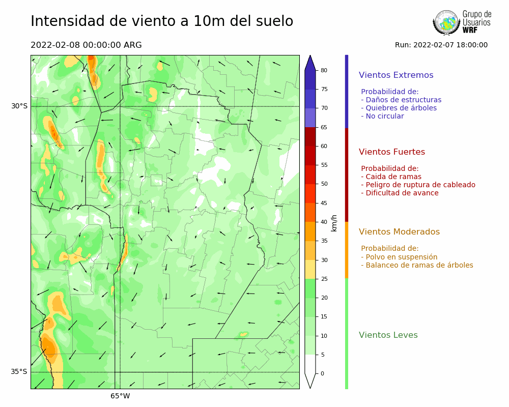 • Intensidad máxima: 16.71 km/h (08/02/2022 07hs.)