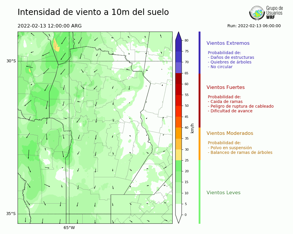 • Intensidad máxima: 12.32 km/h (13/02/2022 20hs.)