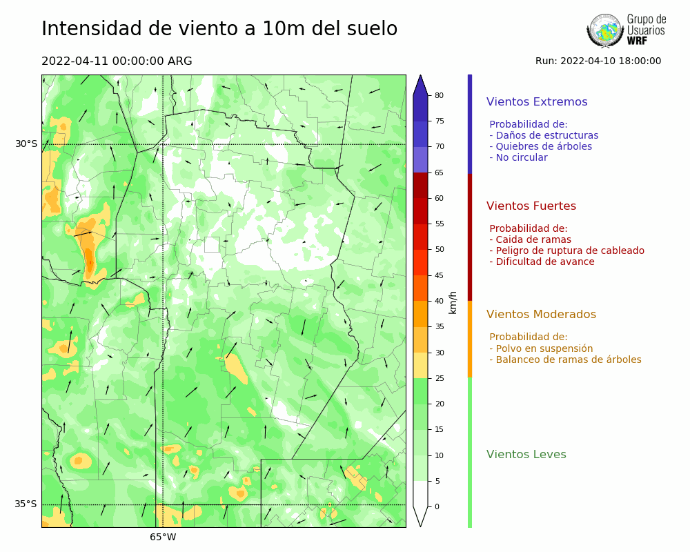 • Intensidad máxima: 19.24 km/h (11/04/2022 05hs.)