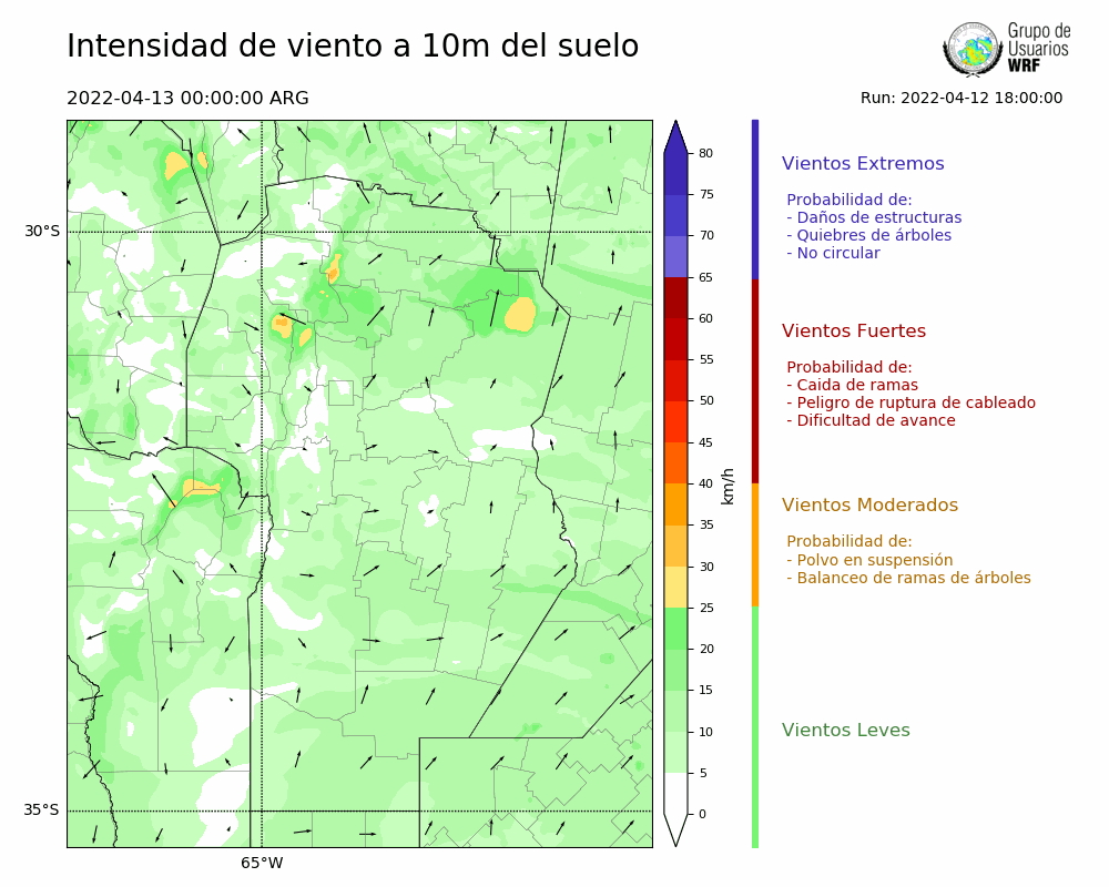 • Intensidad máxima: 8.65 km/h (13/04/2022 06hs.)