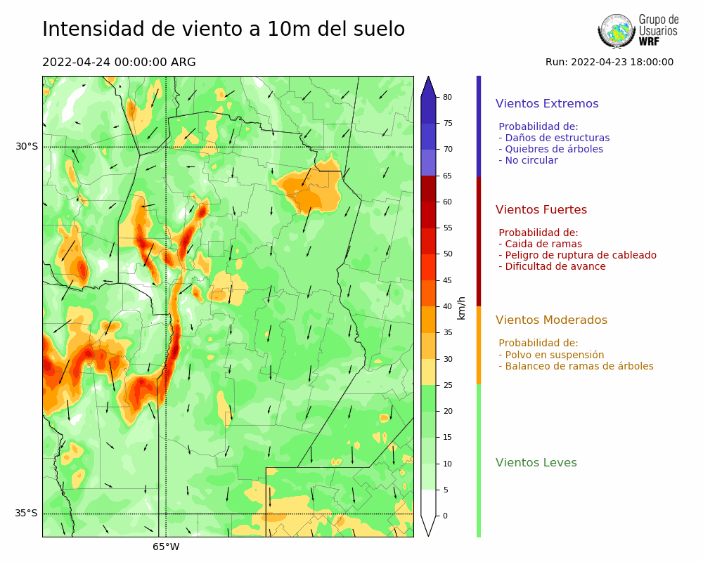 • Intensidad máxima: 33.04 km/h (24/04/2022 11hs.)