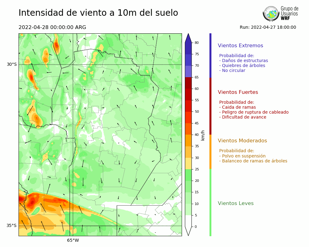 • Intensidad máxima: 10.38 km/h (28/04/2022 00hs.)