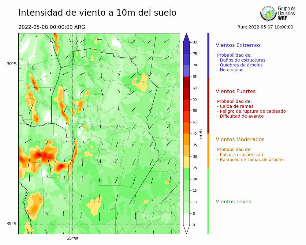 • Intensidad máxima: 15.46 km/h (08/05/2022 00hs.)