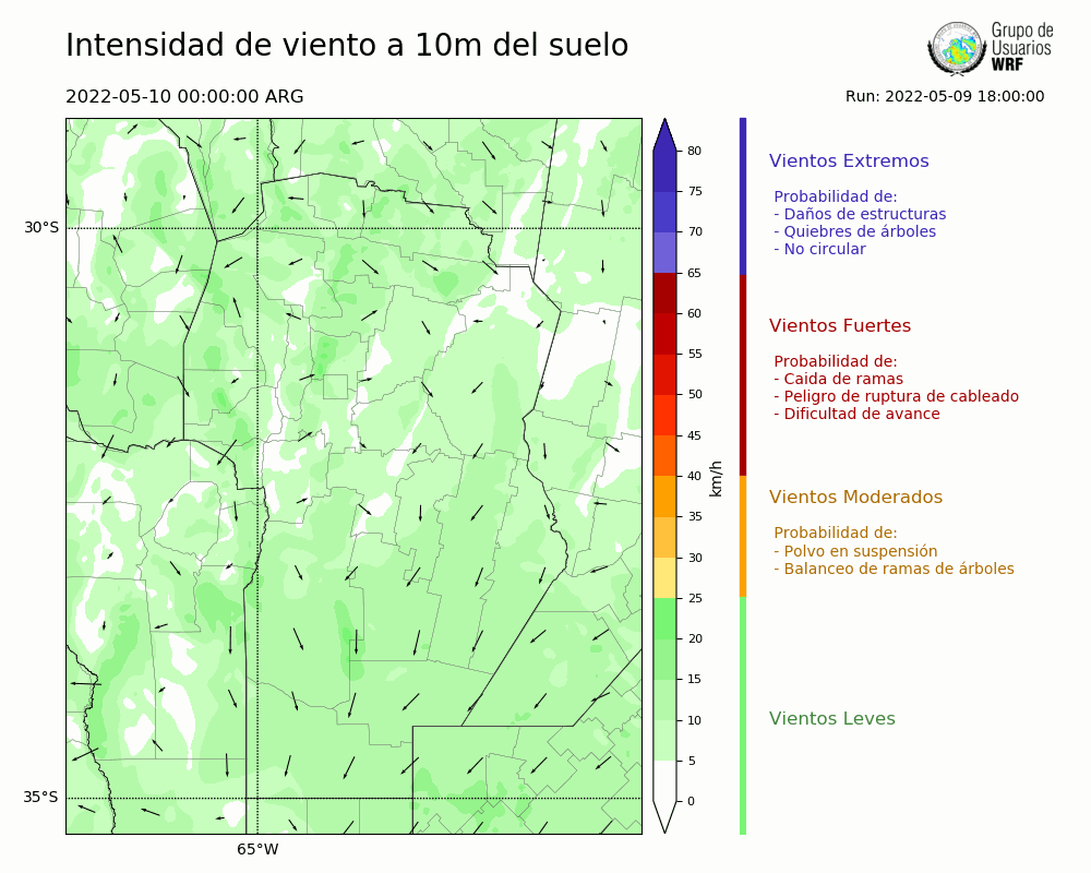 • Intensidad máxima: 20.77 km/h (10/05/2022 03hs.)