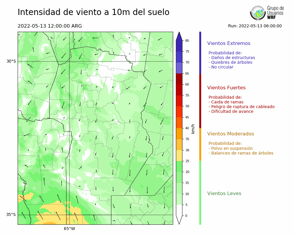 • Intensidad máxima: 12.48 km/h (13/05/2022 14hs.)