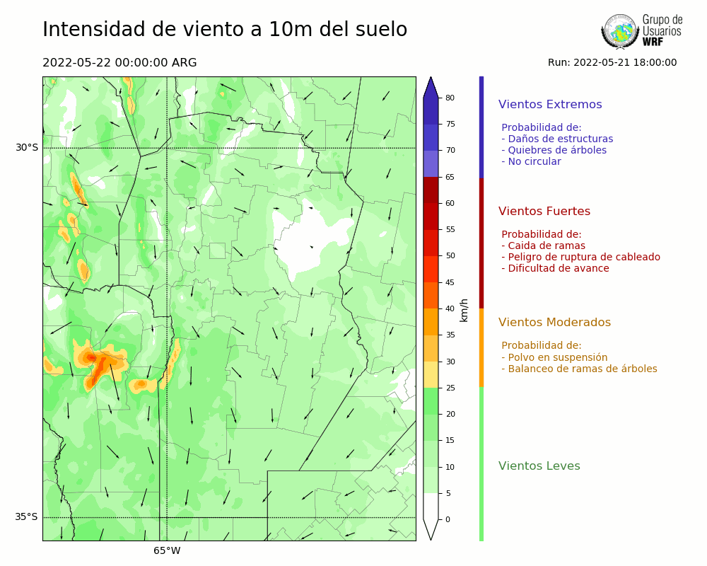 • Intensidad máxima: 22.33 km/h (23/05/2022 04hs.)