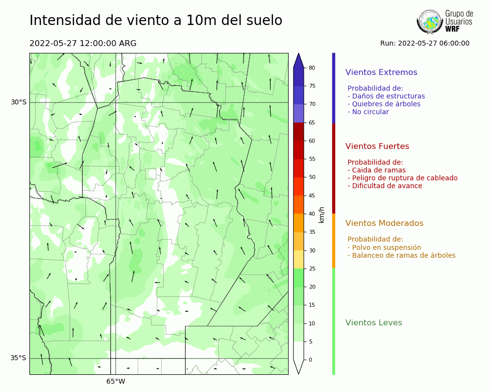 • Intensidad máxima: 10.51 km/h (27/05/2022 12hs.)