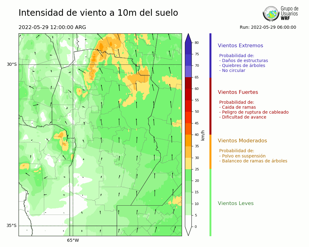 • Intensidad máxima: 15.19 km/h (29/05/2022 14hs.)