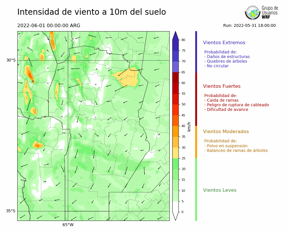 • Intensidad máxima: 16.60 km/h (01/06/2022 06hs.)