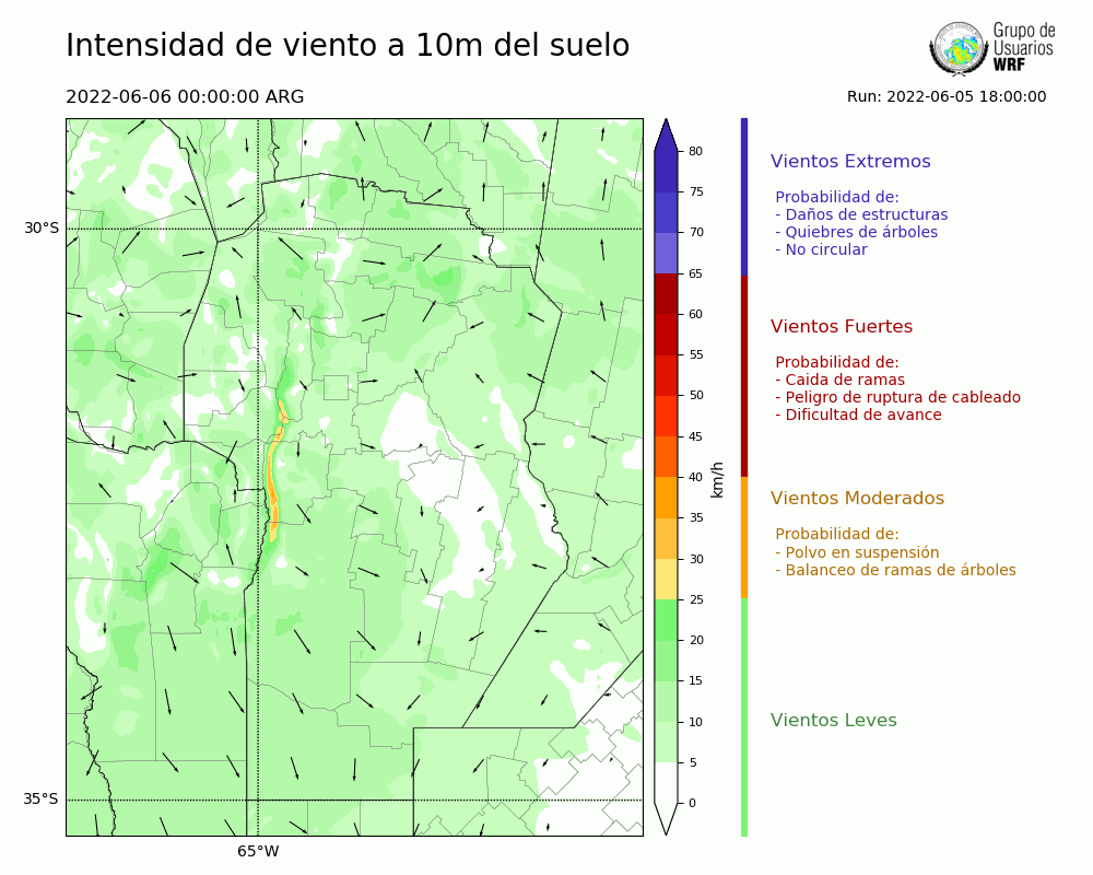 • Intensidad máxima: 27.31 km/h (06/06/2022 04hs.)