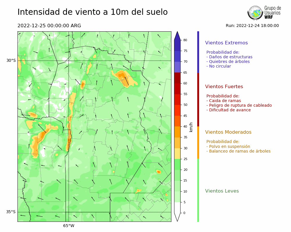 • Intensidad máxima: 19.06 km/h (25/12/2022 04hs.)