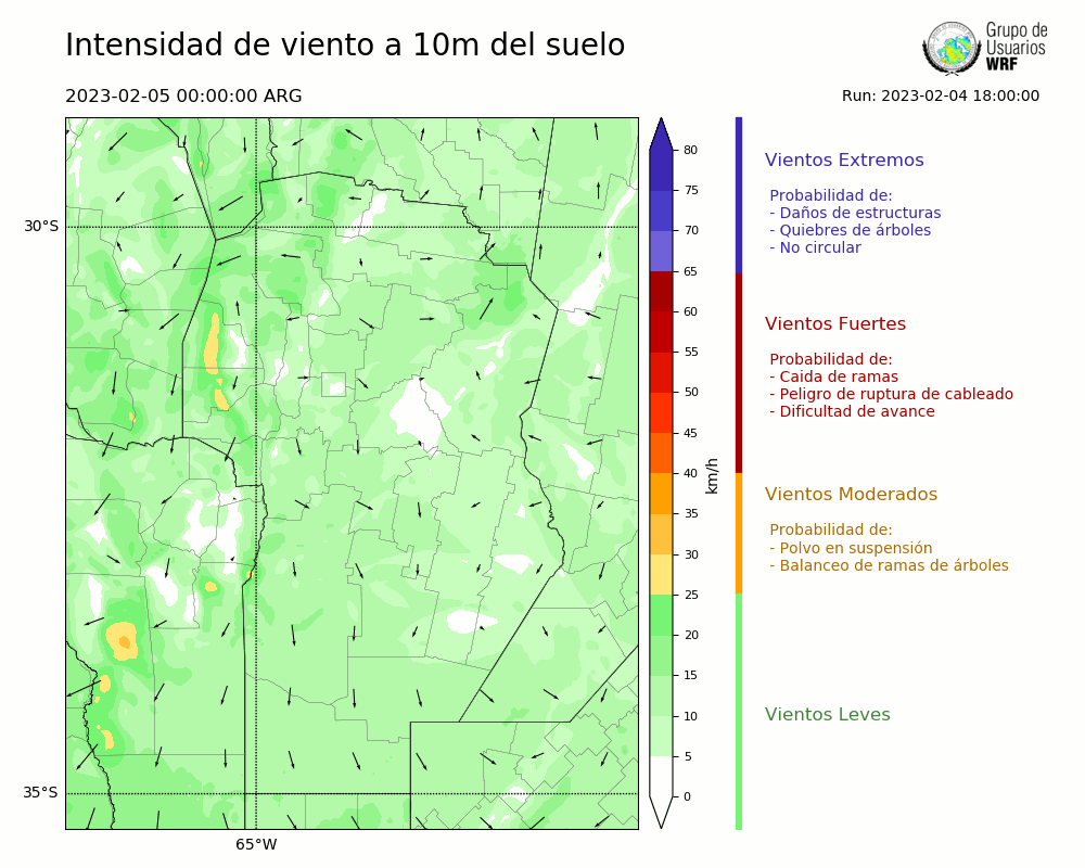 • Intensidad máxima: 26.85 km/h (05/02/2023 08hs.)