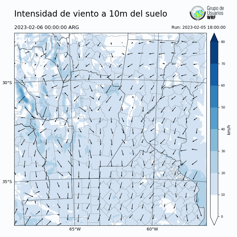 • Intensidad máxima: 30.13 km/h (06/02/2023 04hs.)