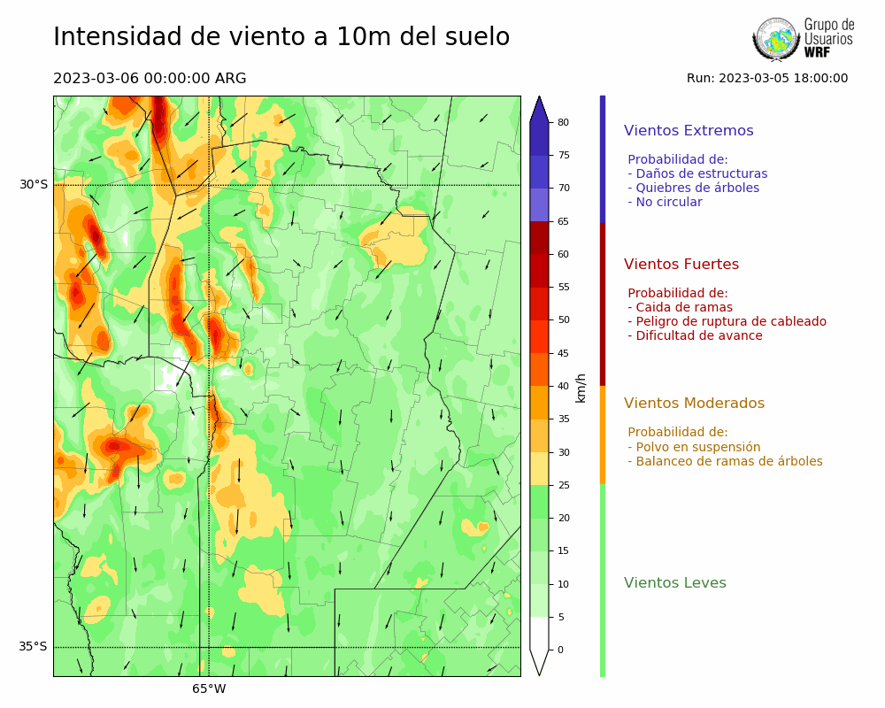 • Intensidad máxima: 30.87 km/h (06/03/2023 05hs.)