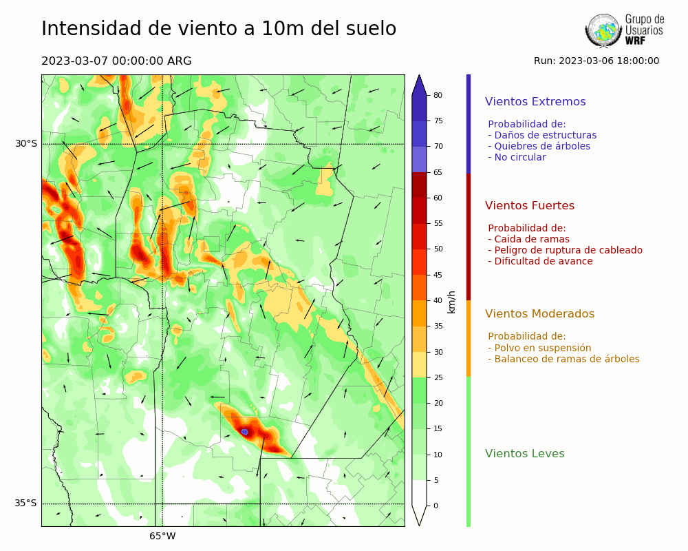 • Intensidad máxima: 36.30 km/h (07/03/2023 08hs.)