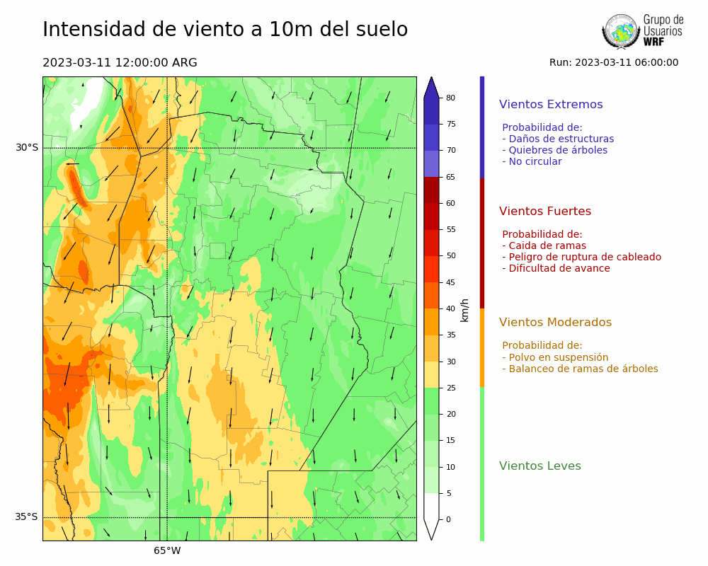 • Intensidad máxima: 4.54 km/h (12/03/2023 06hs.)