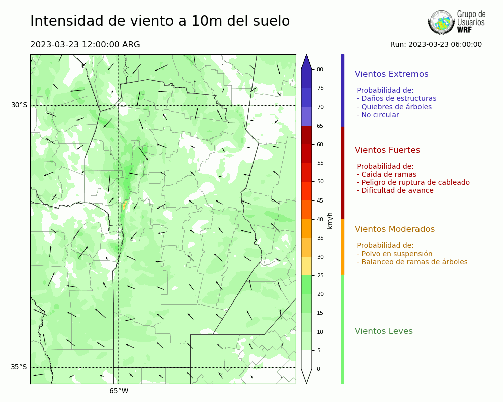 • Intensidad máxima: 14.28 km/h (23/03/2023 18hs.)