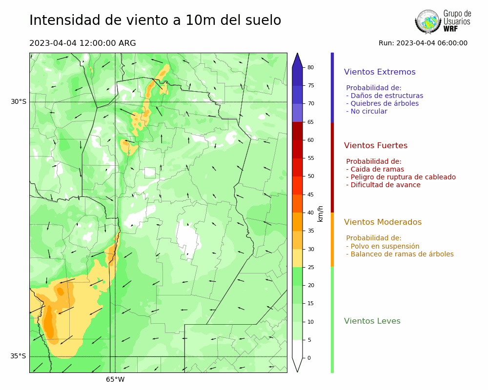 • Intensidad máxima: 10.27 km/h (06/04/2023 05hs.)