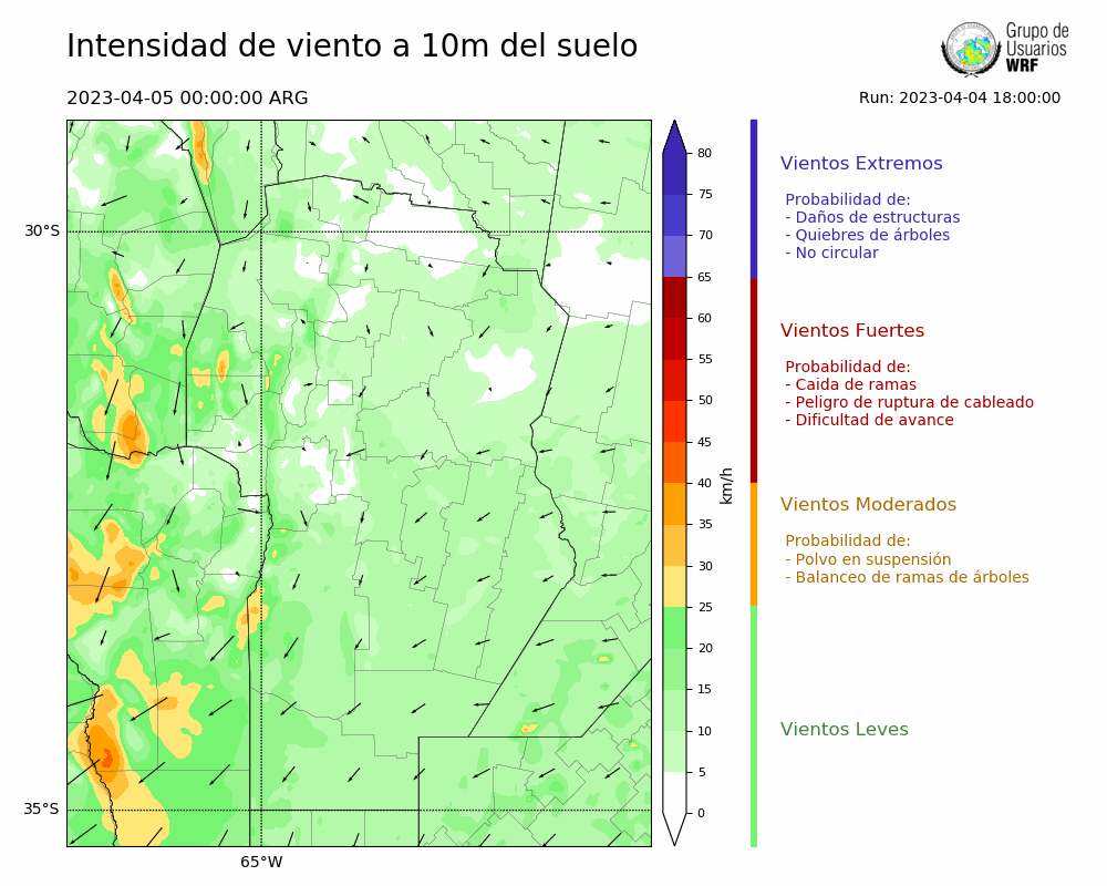 • Intensidad máxima: 9.77 km/h (05/04/2023 11hs.)