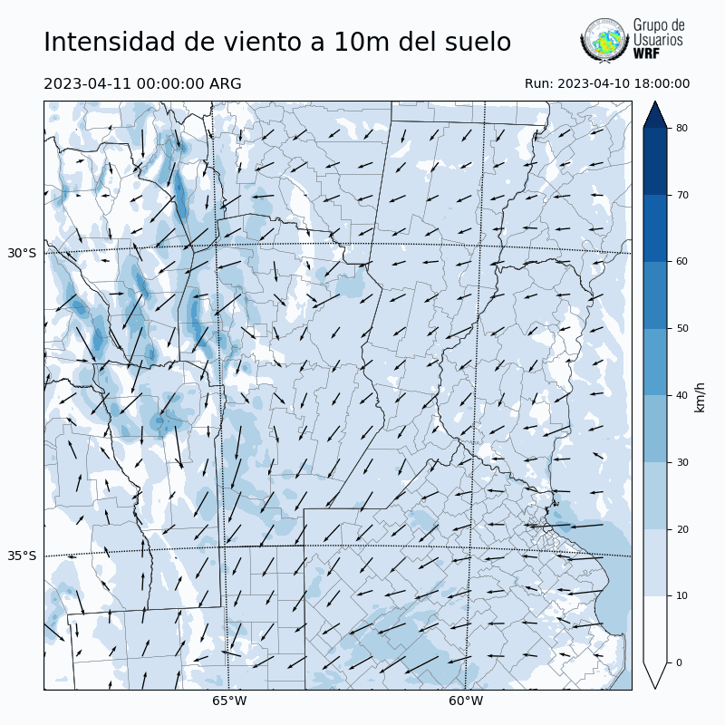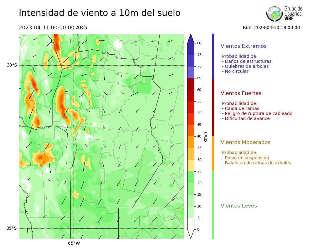• Intensidad máxima: 18.75 km/h (12/04/2023 08hs.)