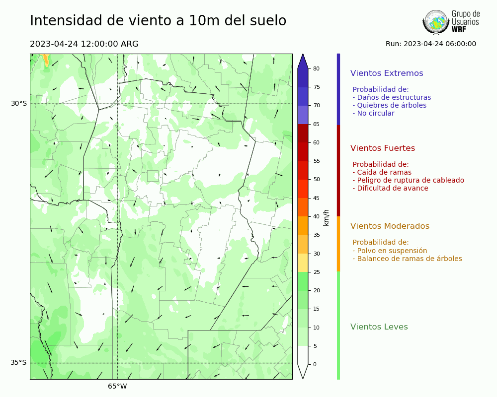 • Intensidad máxima: 4.30 km/h (25/04/2023 07hs.)
