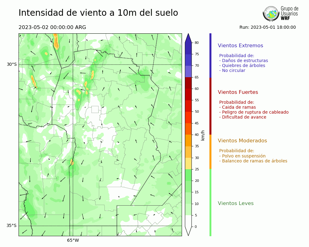 • Intensidad máxima: 5.31 km/h (02/05/2023 04hs.)