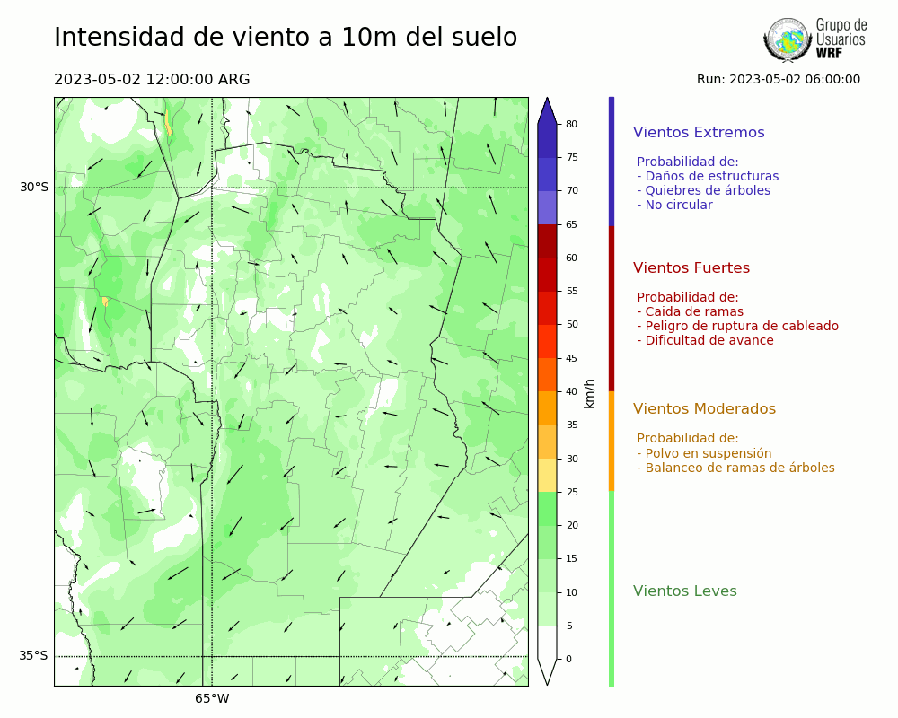 • Intensidad máxima: 15.17 km/h (02/05/2023 13hs.)