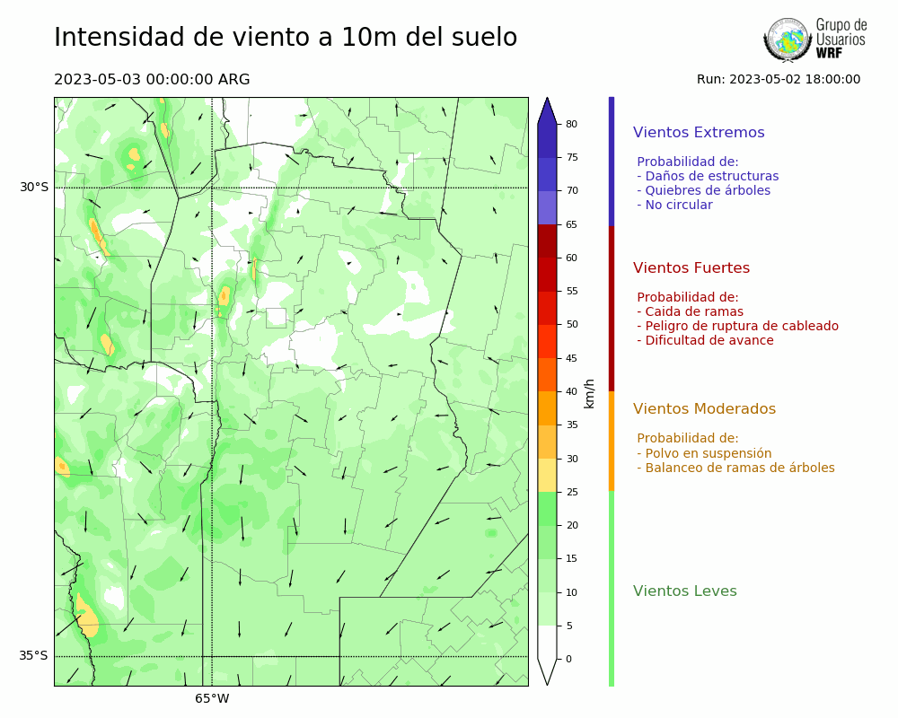 • Intensidad máxima: 4.70 km/h (04/05/2023 03hs.)