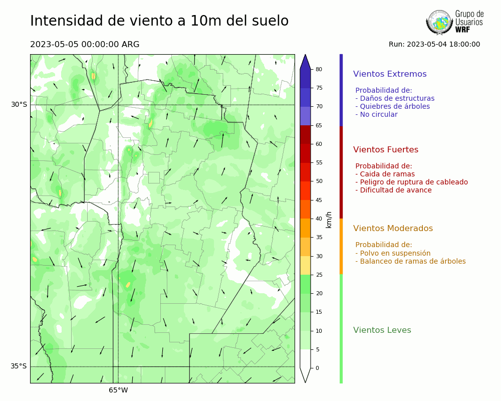 • Intensidad máxima: 14.42 km/h (06/05/2023 14hs.)