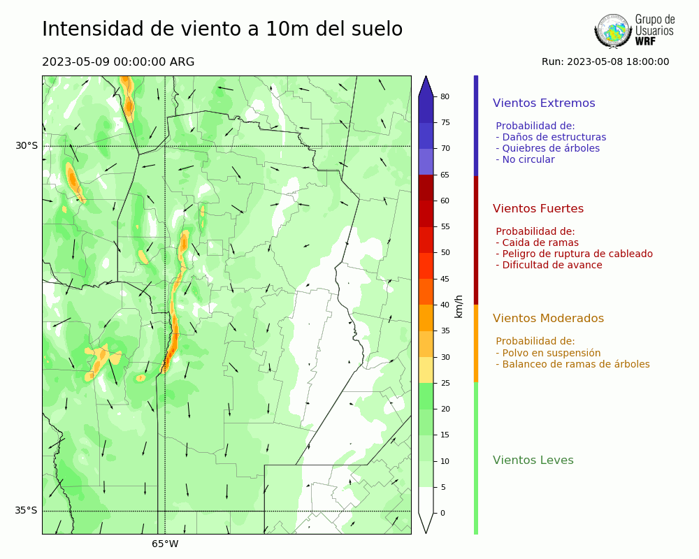 • Intensidad máxima: 32.18 km/h (09/05/2023 02hs.)