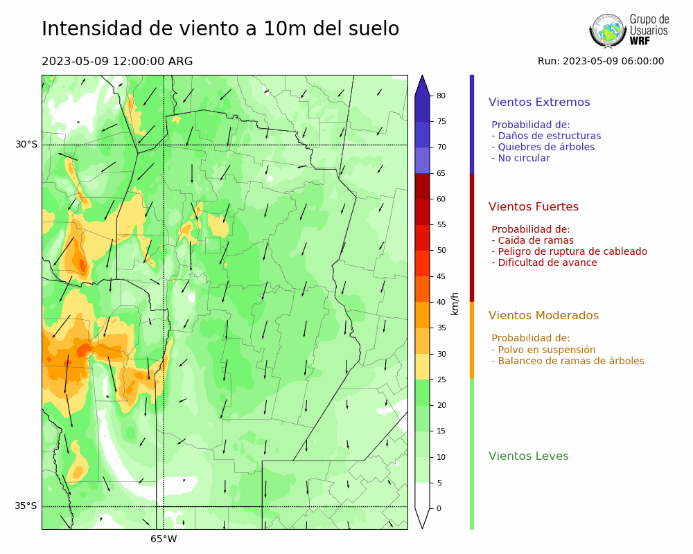 • Intensidad máxima: 18.49 km/h (09/05/2023 17hs.)