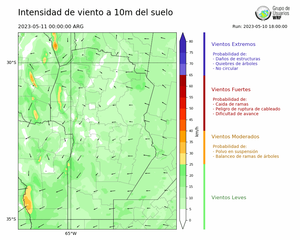 • Intensidad máxima: 13.70 km/h (12/05/2023 05hs.)