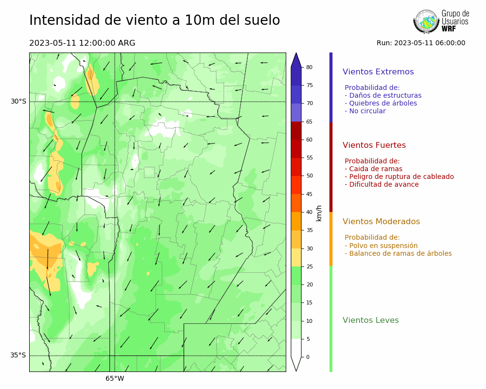 • Intensidad máxima: 19.81 km/h (12/05/2023 18hs.)