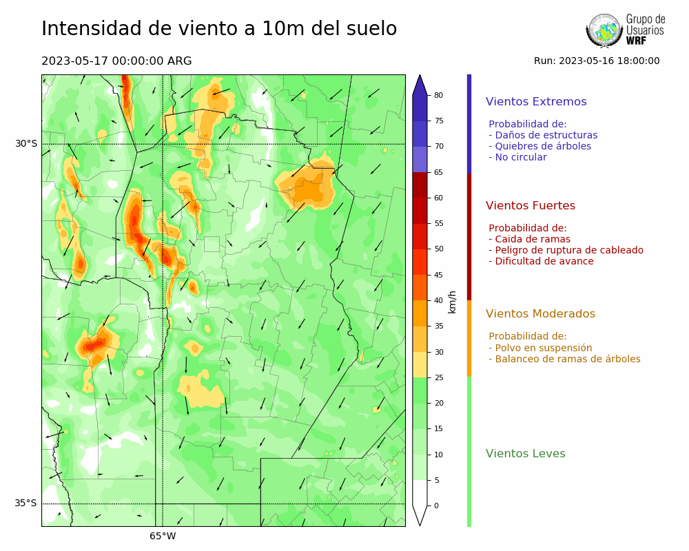 • Intensidad máxima: 6.42 km/h (17/05/2023 11hs.)