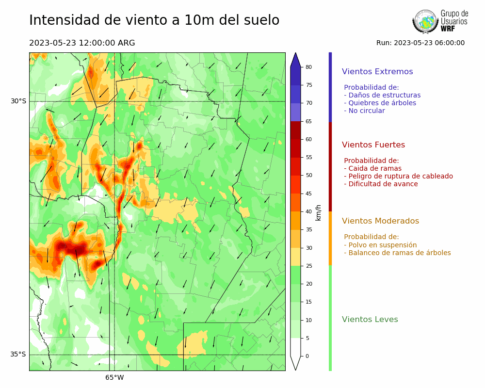 • Intensidad máxima: 30.33 km/h (23/05/2023 12hs.)
