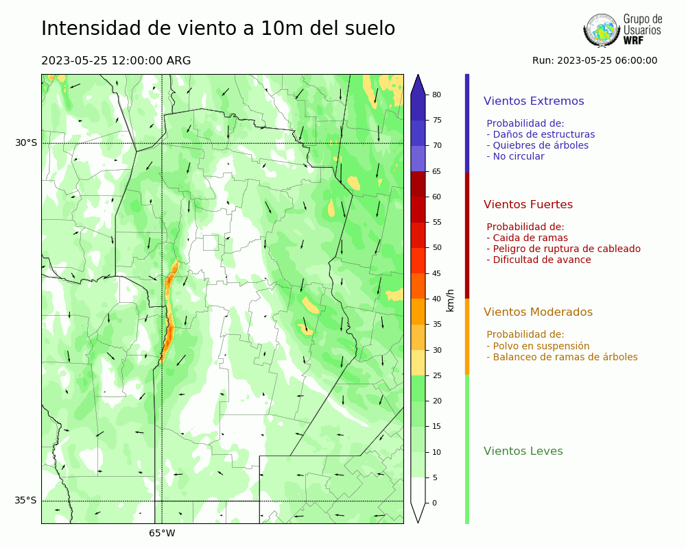 • Intensidad máxima: 8.73 km/h (25/05/2023 20hs.)