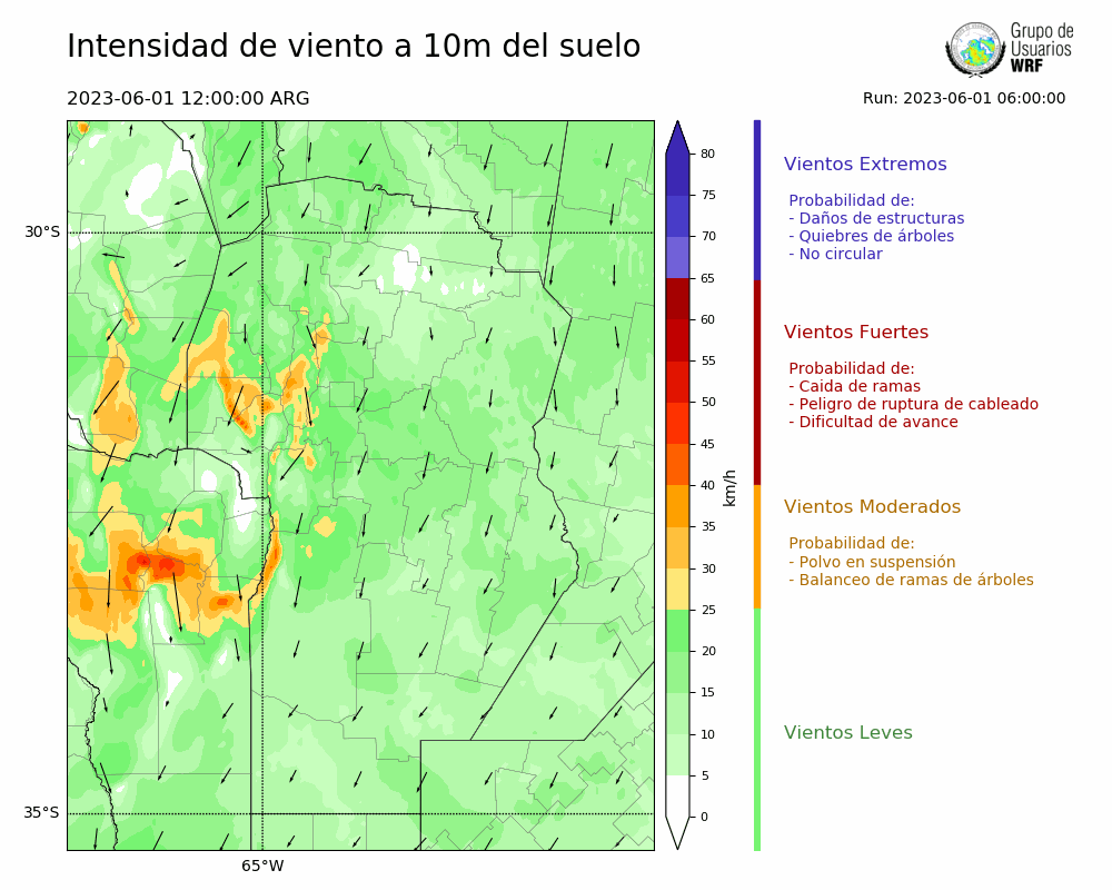 • Intensidad máxima: 14.22 km/h (02/06/2023 06hs.)