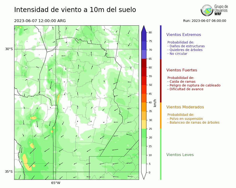• Intensidad máxima: 30.96 km/h (08/06/2023 16hs.)