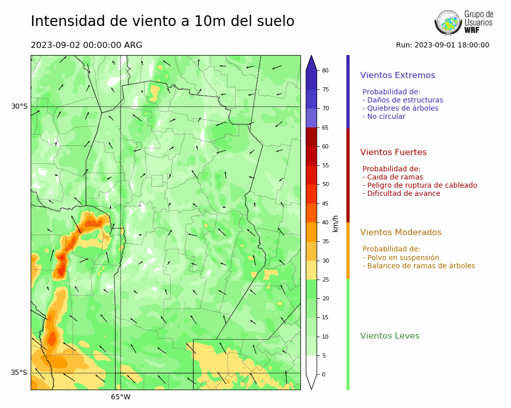 • Intensidad máxima: 26.55 km/h (02/09/2023 11hs.)