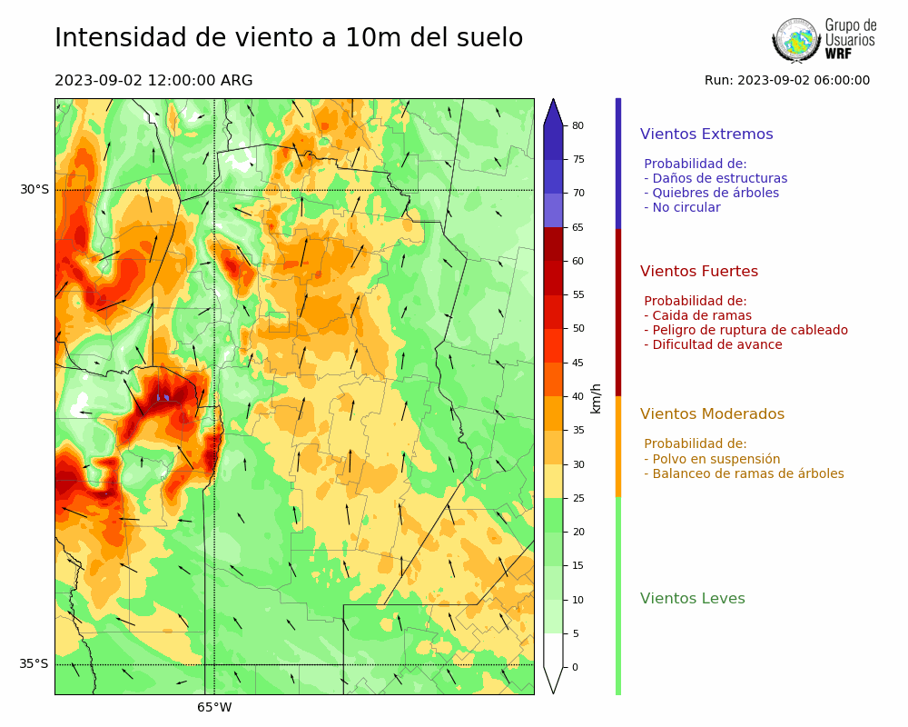• Intensidad máxima: 26.84 km/h (02/09/2023 12hs.)