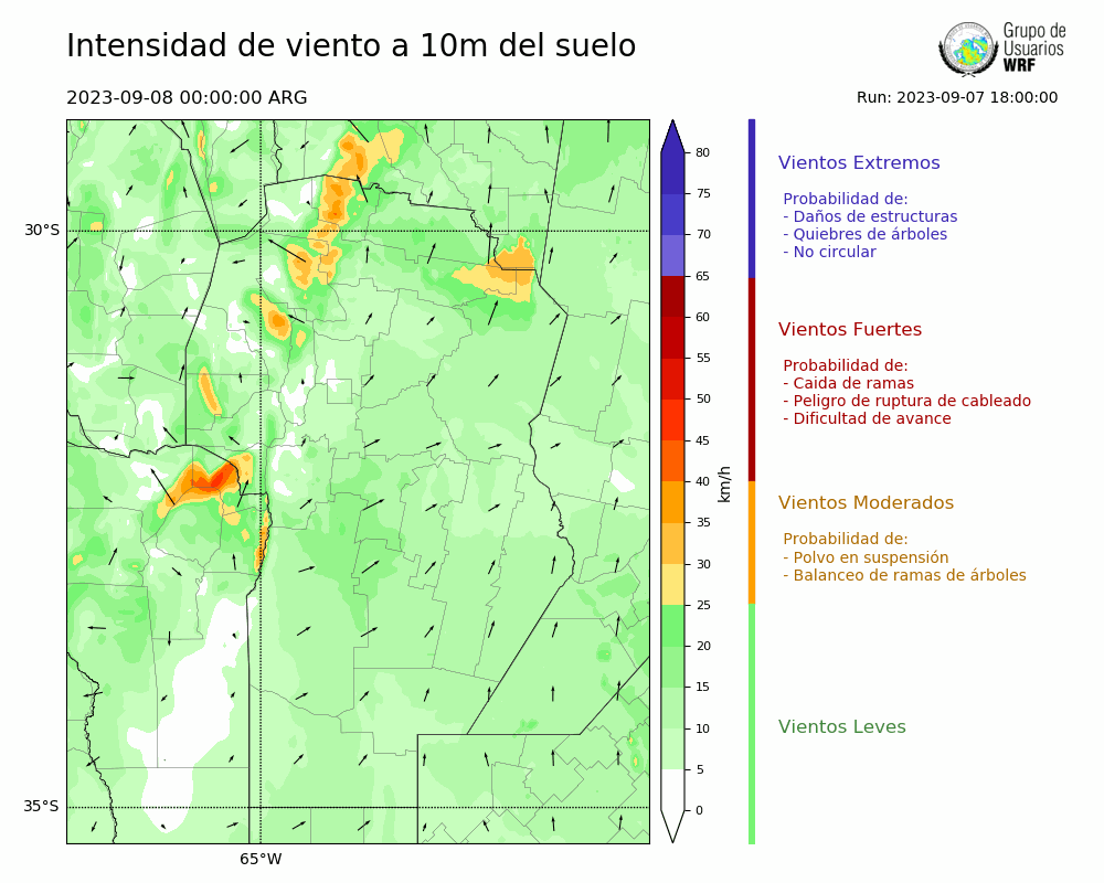 • Intensidad máxima: 6.30 km/h (08/09/2023 07hs.)