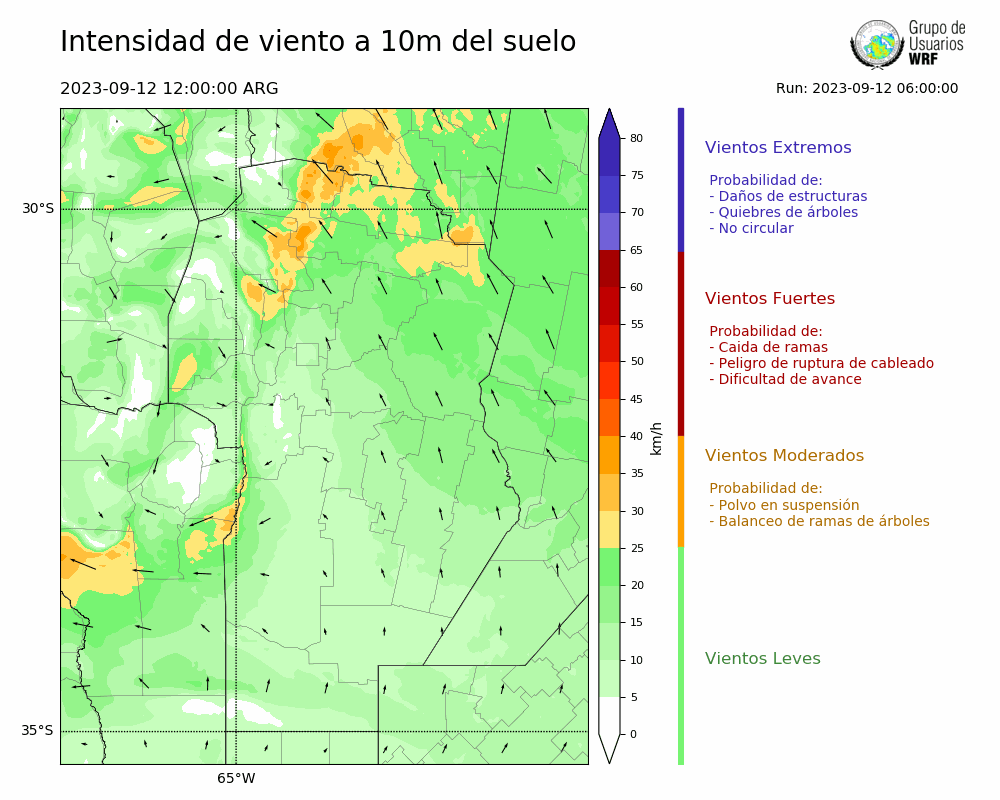 • Intensidad máxima: 20.21 km/h (12/09/2023 16hs.)