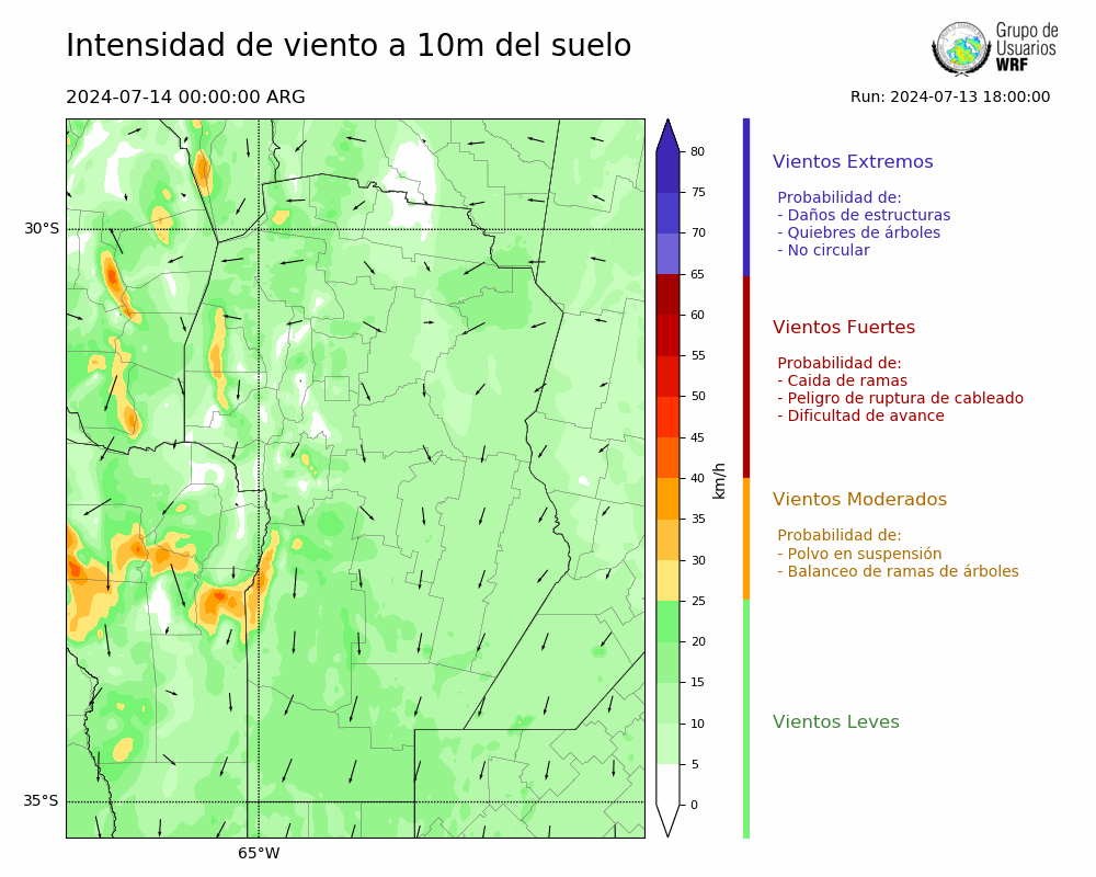 • Intensidad máxima: 21.94 km/h (14/07/2024 05hs.)